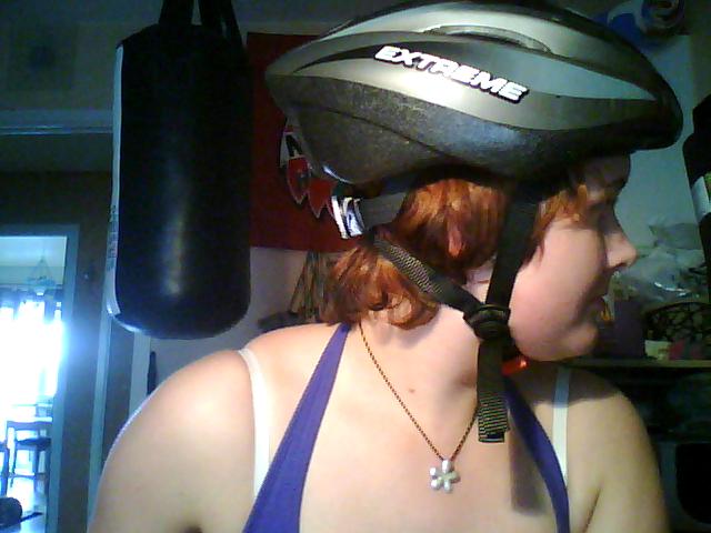 Visst fann vi varsin hjälm alltid. Men som vanligt ska jag vara besvärlig, coops hjälm (som Ewwe köpte) dög inte åt mig.. Utan vi blev tvungna att ta oss upp till Team Sportia för att tillfredsställa mina önskemål. Givetvis blev det genast mycket dyrare. Jaja, men en hjälm är ju en slags livförsäkring så det fick väl vara värt det då. Men det var ändå några kronor rea på den.. Snacka om att den sitter stadigt, jag behöver inte ens knäppa den för att ska sitta kvar när jag skakar på huvudet! Det ni. Nu kan jag ut och krocka och åtminstone få huvudet i behåll efteråt. Ja, jag bjuder på en bild också, så ni får något att skratta åt eller tycka att jag är ett duktigt ägghuvud. (Ja, bilden är tagen med webbkameran, men det känns mindre löjligt än att sträcka ut en arm och fota sig själv och mindre jobbigt än sätta upp stativet och fiffla med självutlösning...) I övrigt så hittade jag också omslagspapper till lillebrors studentpresent. Mina syskon börjar bli läskigt gamla nu! Brorsan tar studenten och lillasyster är lika gammal som jag var då jag blev tillsammans med Gustav. Shit, det har snart gått fyra år sen vi träffades (under Kramfors Stadsfest). Det är ju inte riktigt klokt...
